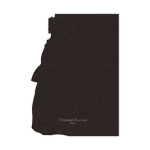 An 80 paged notebook with each page die-cut to match the couture art featured on the front cover. The cover art illustrates one of the many gowns created by Christian Lacroix, with the gown treated with gold and silver foil.